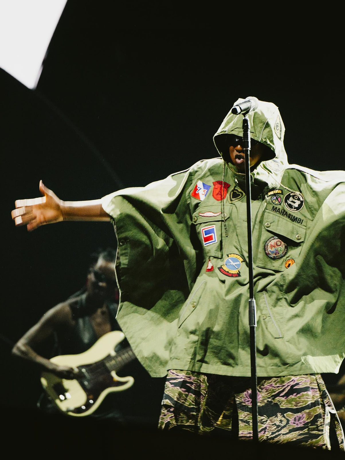 As part of Simz’s critically acclaimed Lotus tour, MAHASIMBI brings bespoke stagewear to life, pairing Maharishi’s signature craftsmanship with Little Simz’s fearless, genre-defying artistry. Each look has been custom-designed for the stage, drawing on deep symbolism to reflect the spirit of the Lotus project.