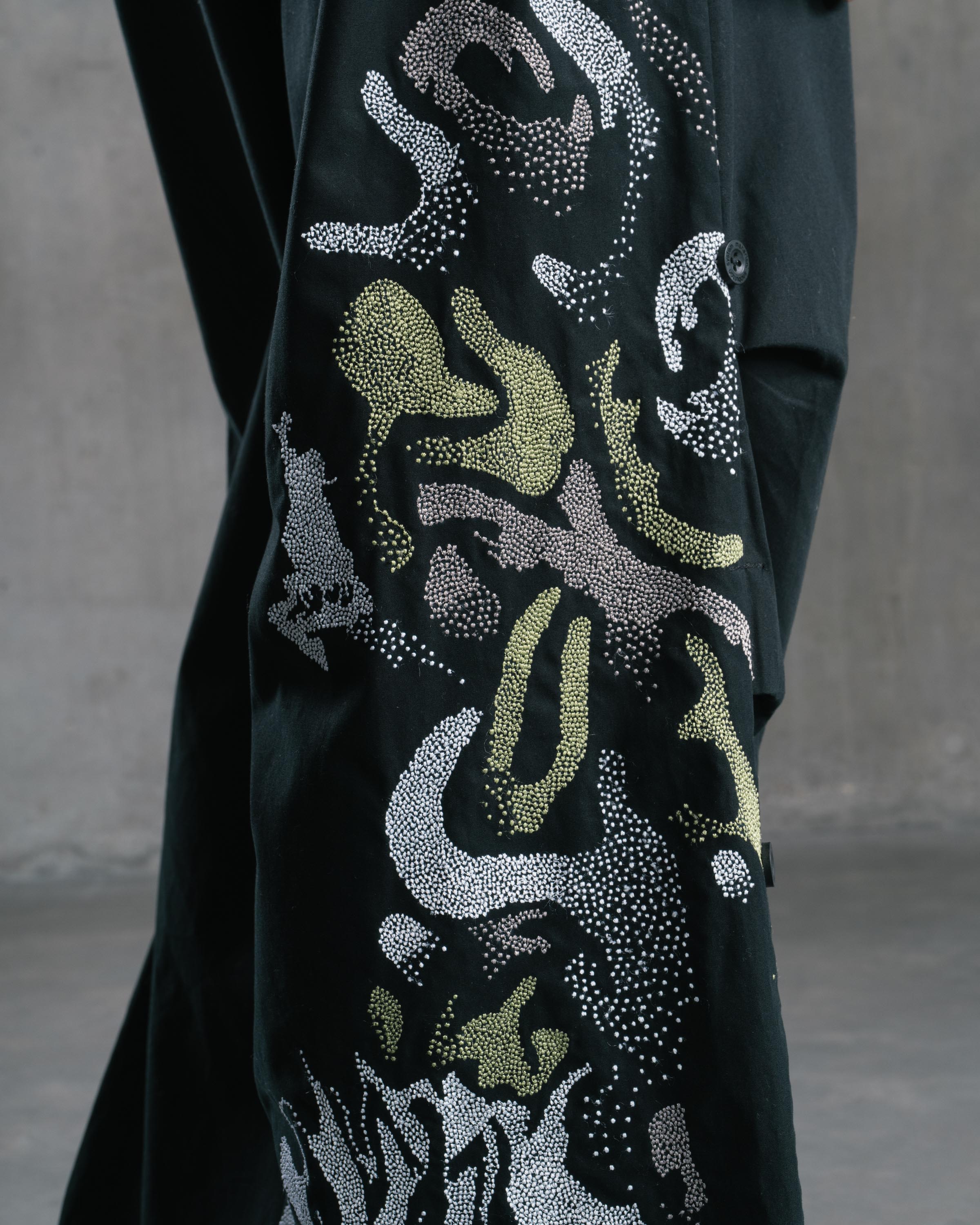 Maharishi's signature Original Snopants® featuring seasonal hand machined embroideries.