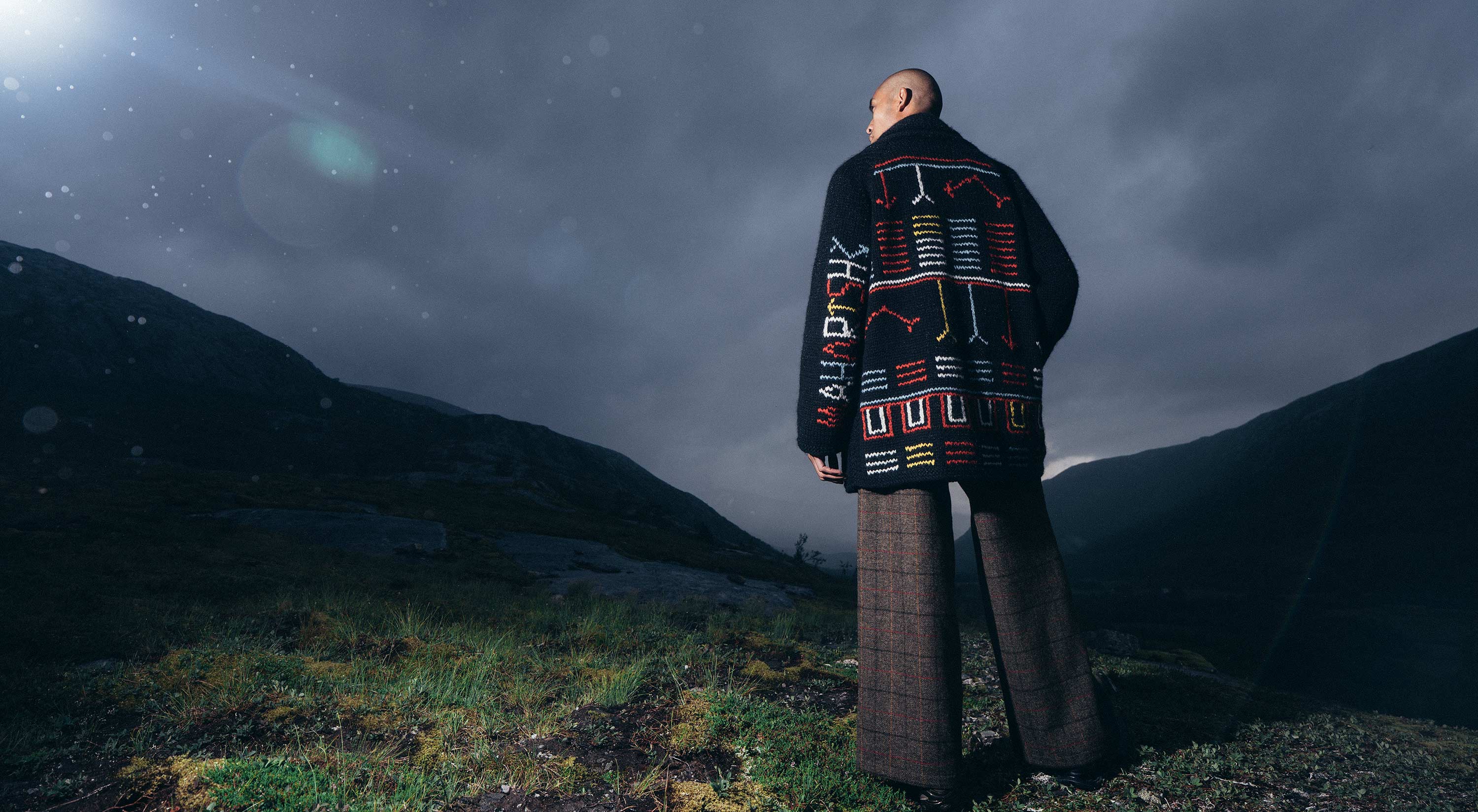The Alaskan Hill Tribe capsule draws inspiration from tribal motifs and the art of Indigenous Alaskan cultures. Central to the collection are traditional wool-weaving techniques that are reworked with Maharishi's signature embroidery to bring depth and texture.