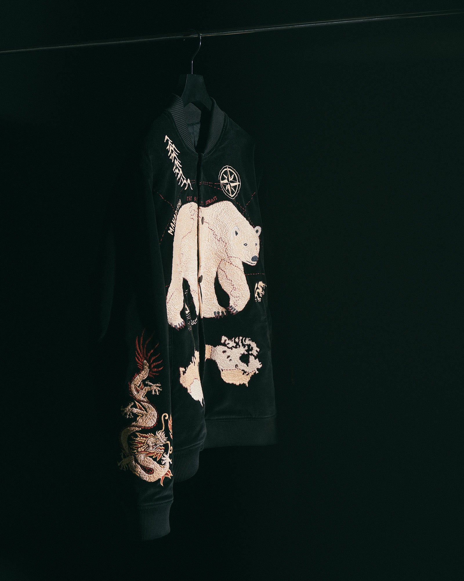 The Maharishi outerwear collection incorporates far eastern influences with military silhouettes including MA-1 flight jackets, hooded winter parkas, hanten kimonos and embroidered souvenir tour jackets made in eco-conscious cloths and water repelling technical fabrics.