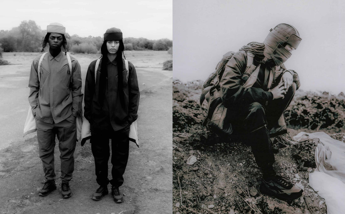 Internal carry straps allow experimental flight jackets to be worn over the shoulders and secure pocket arrangements are fit for multi-situational use when travelling or commuting.