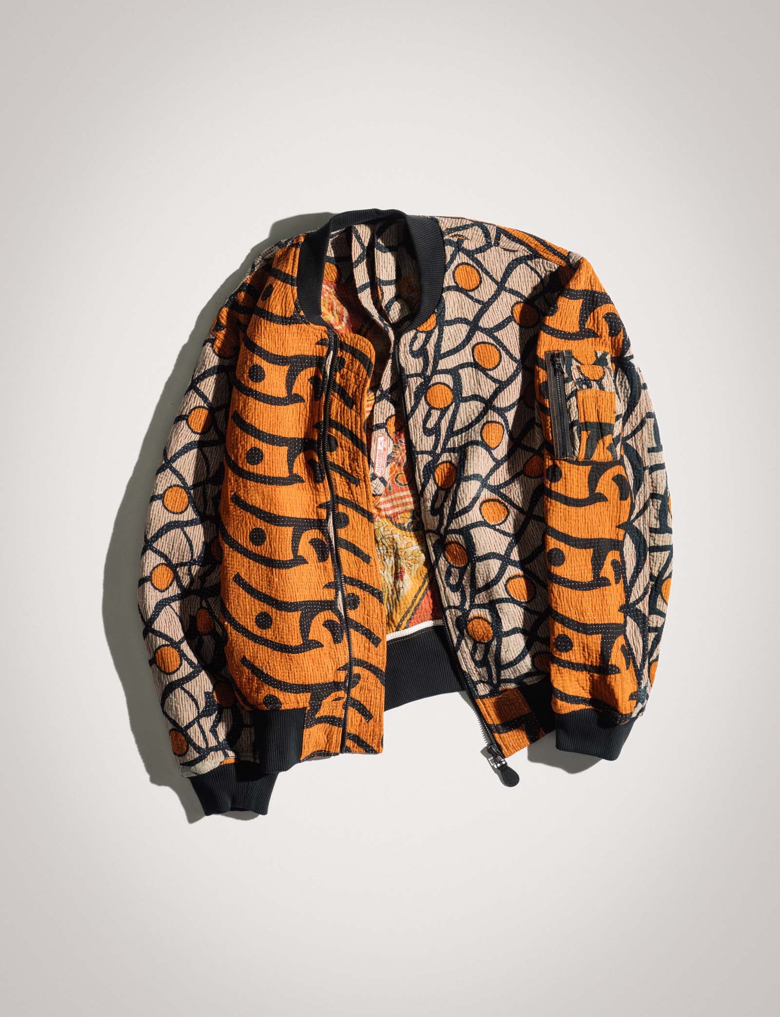 Offered in the iconic MA-1 and kimono silhouettes in addition to large blankets, these pieces fuse utility with artistry, combining structured tailoring with fluid, relaxed forms.