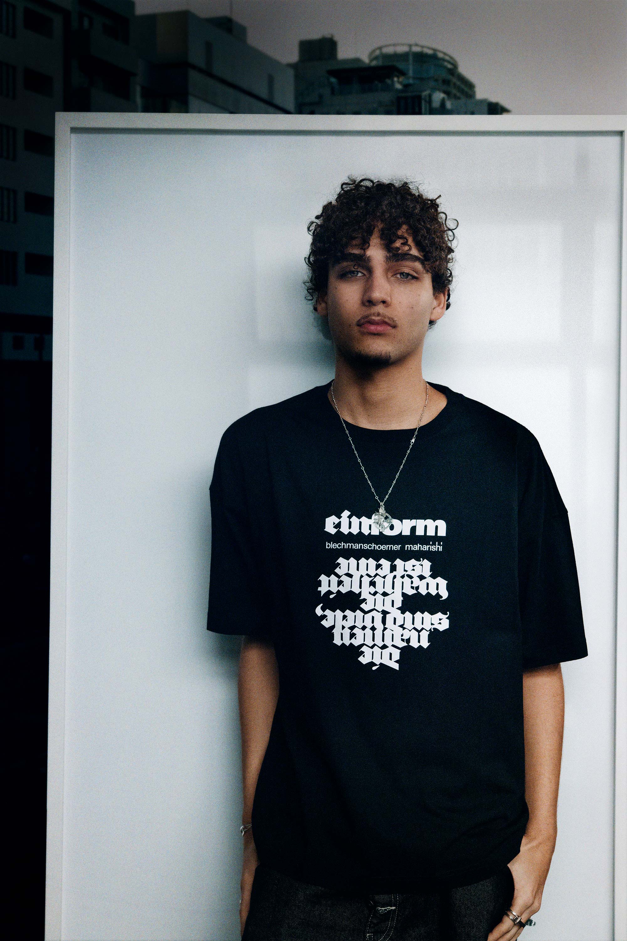 Maharishi has collaborated with Norbert Schoerner on a limited-release graphic T-shirt titled EINFORM. A unified, concept-driven philosophy, EINFORM reflects a shared ethos between Maharishi founder Hardy Blechman and artist Norbert Schoerner, referencing and communicating their conceptual visual language in wearable form.