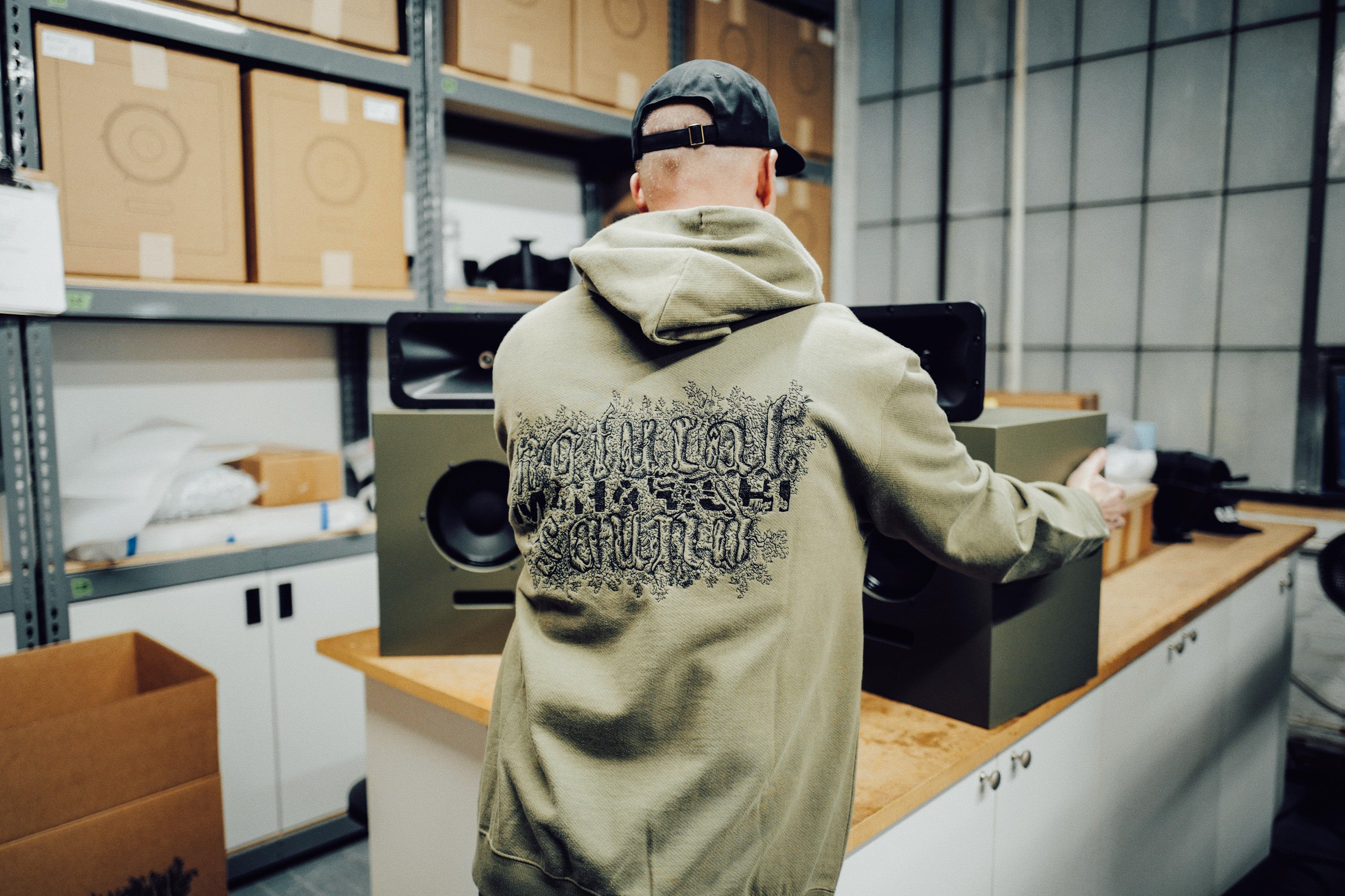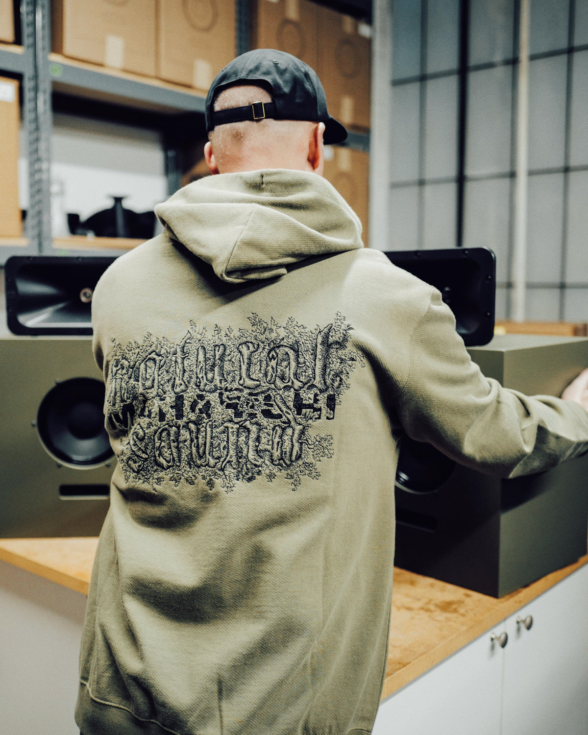 This latest capsule includes a selection of pacifist military inspired designs including signature Original Snopants®, an organic cotton hooded sweat, and cotton hemp record tote bag. A set of bespoke Maha olive Artbook Shelf Speakers have also been installed in the Maharishi New York store in Tribeca.