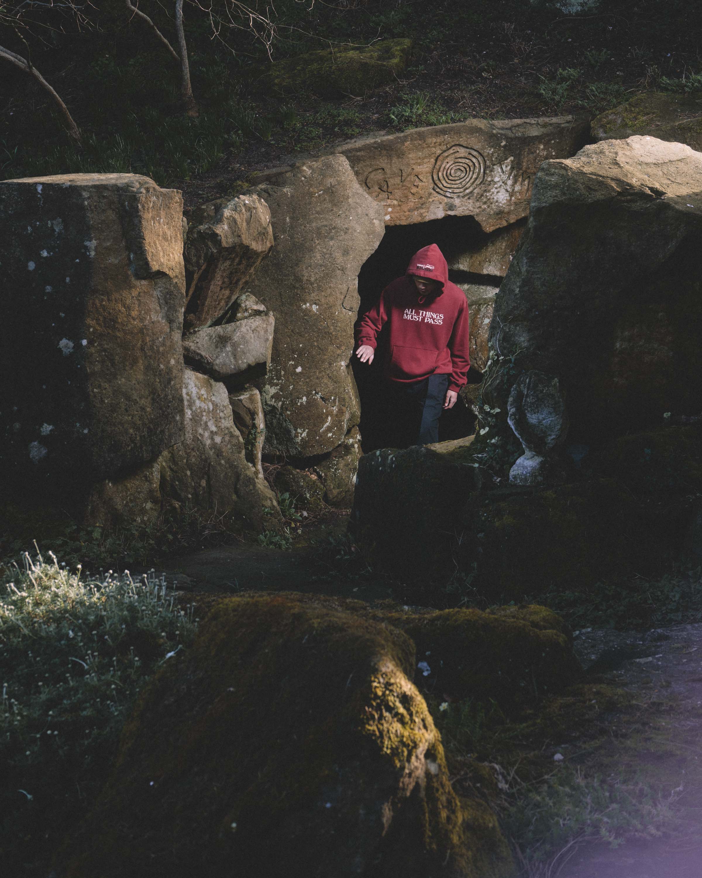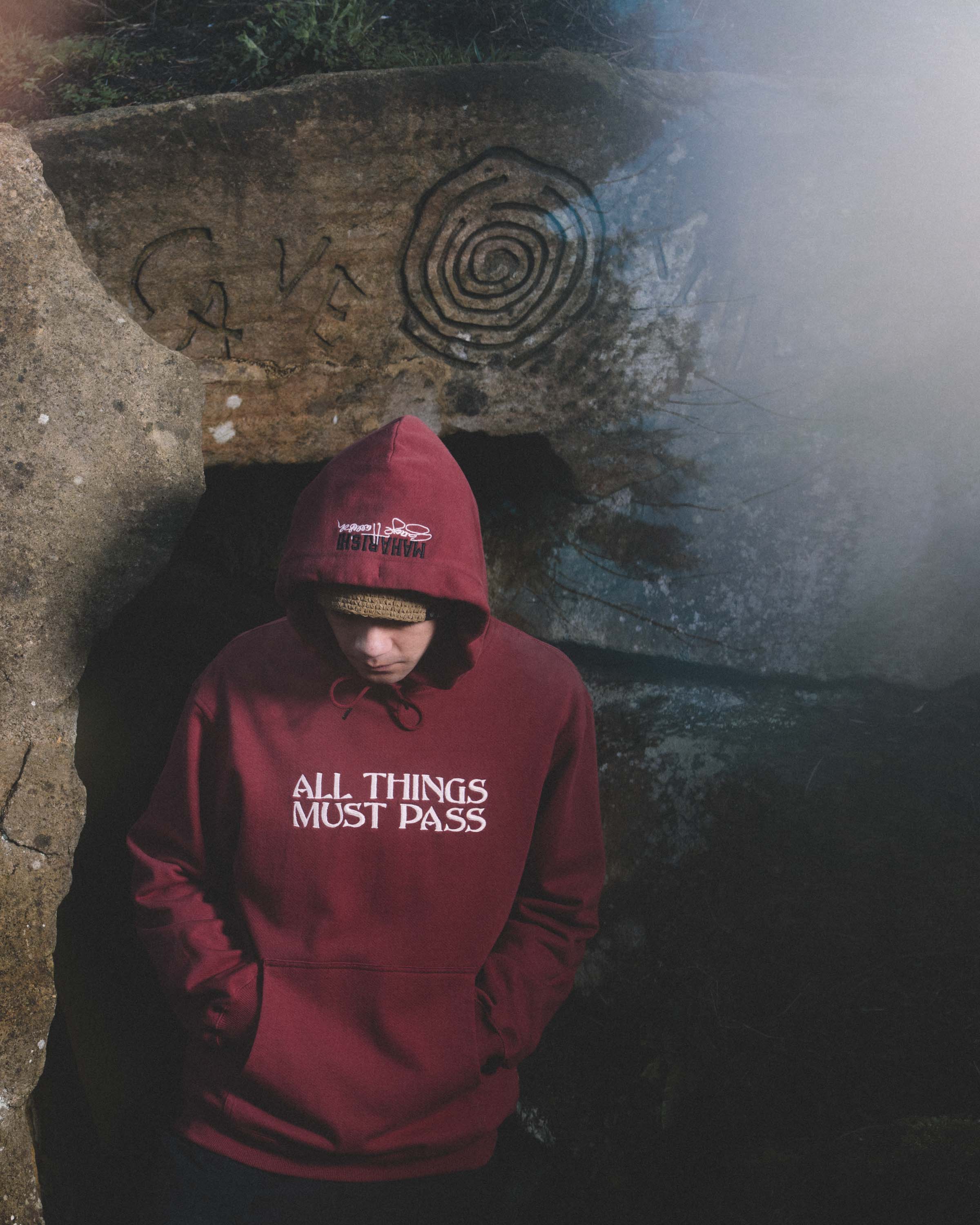 The T-shirt features a graphic referencing the Lunar Year of the Horse, aligning Maharishi’s interest in symbolism and cyclical time with the label’s identity. The hoodie features the phrase “All Things Must Pass,” referencing George Harrison’s landmark solo album All Things Must Pass, a title closely associated with the label’s ethos and legacy.