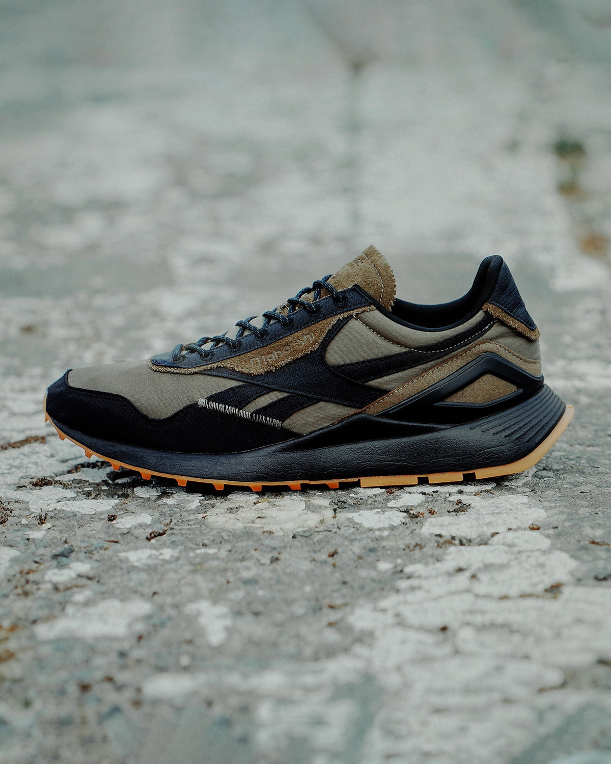 The nylon construction of the iconic MA-1 flight jacket is combined with contrasting MIL–SPEC ripstop panels — referencing the olive and black subdued patches used as insignia on uniforms — as well as 3M reflective highlights for high visibility, and finished with the infamous Reebok gum sole.