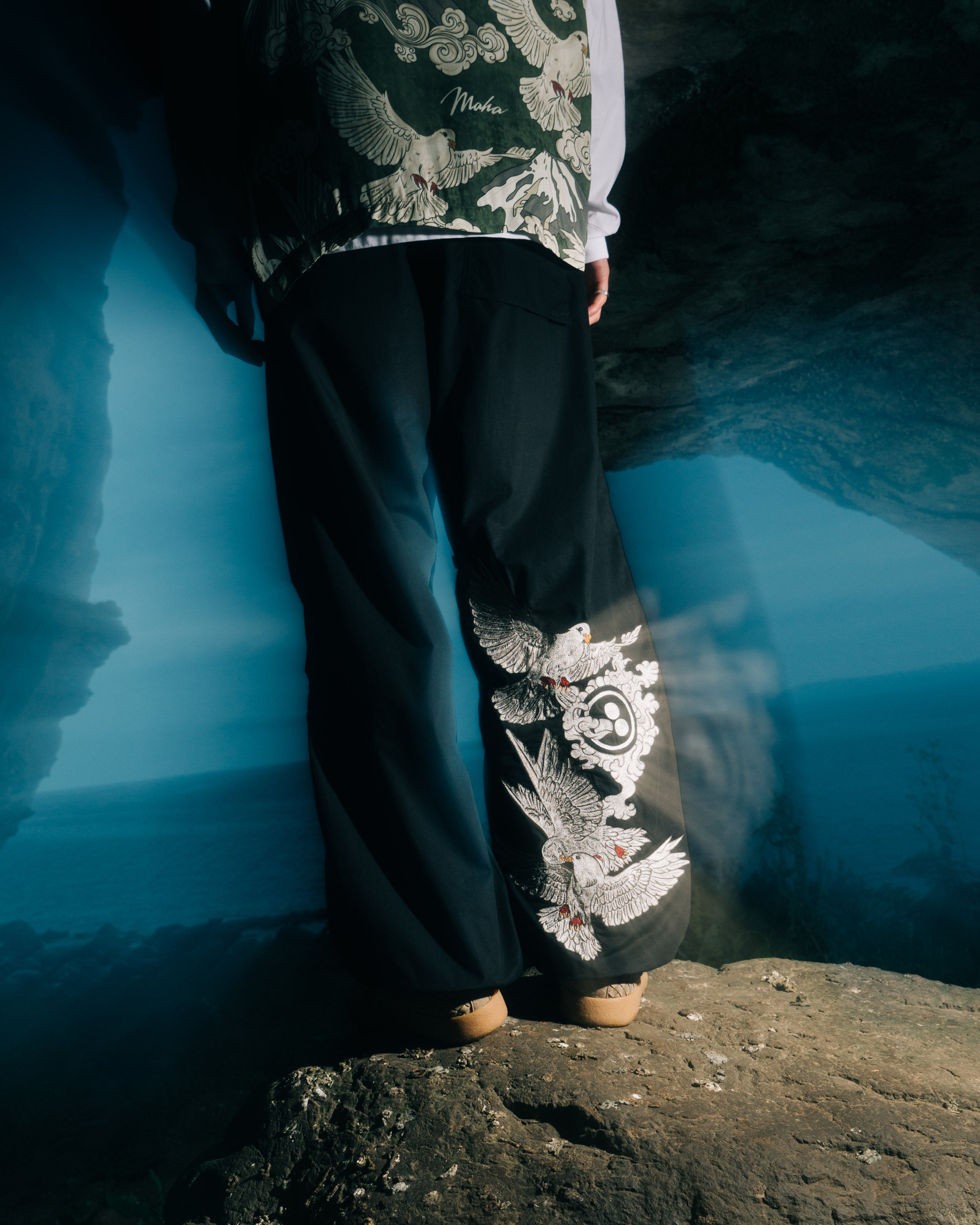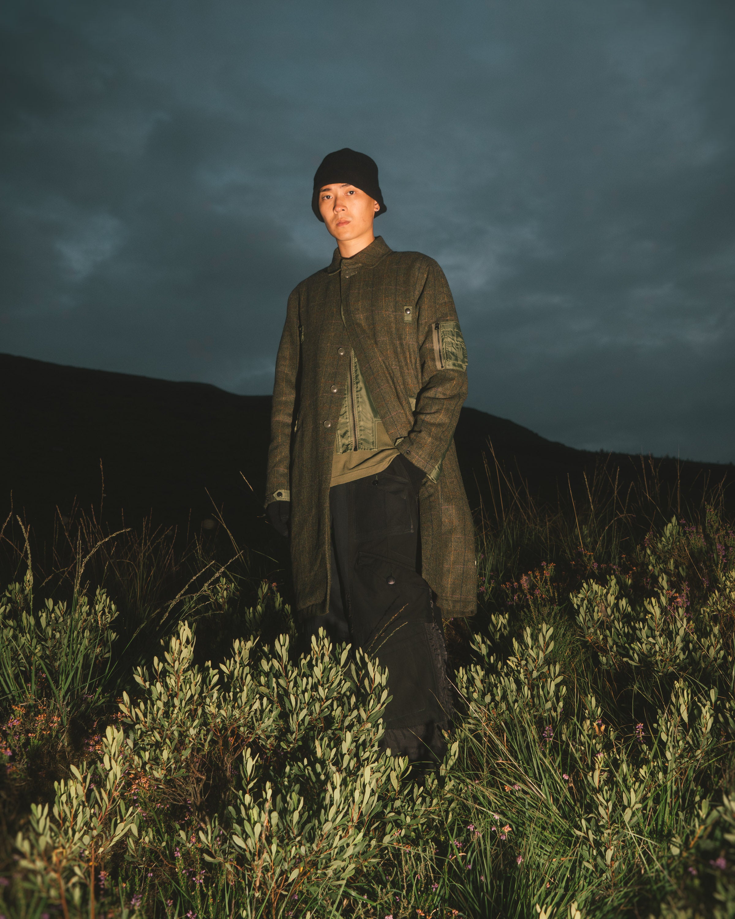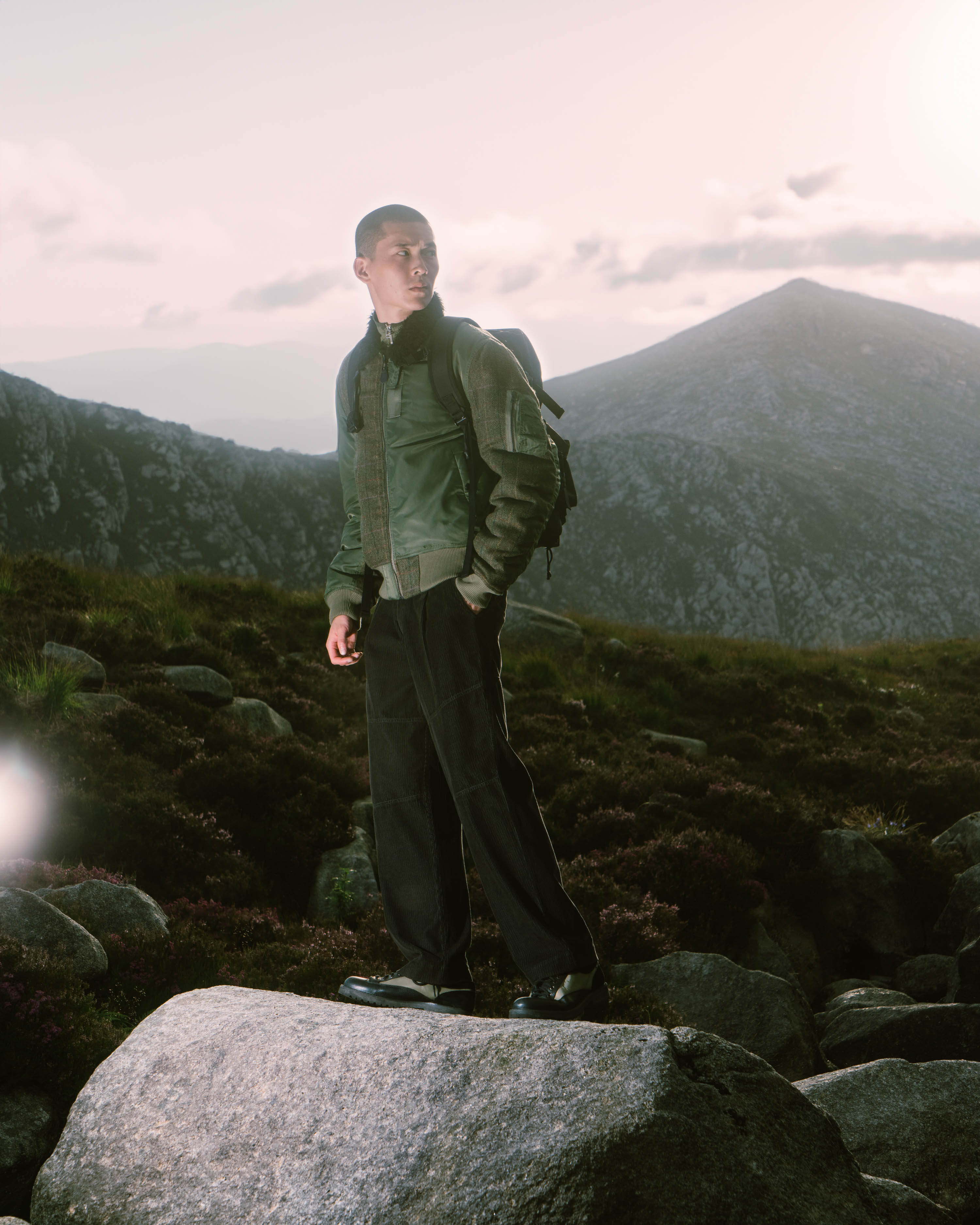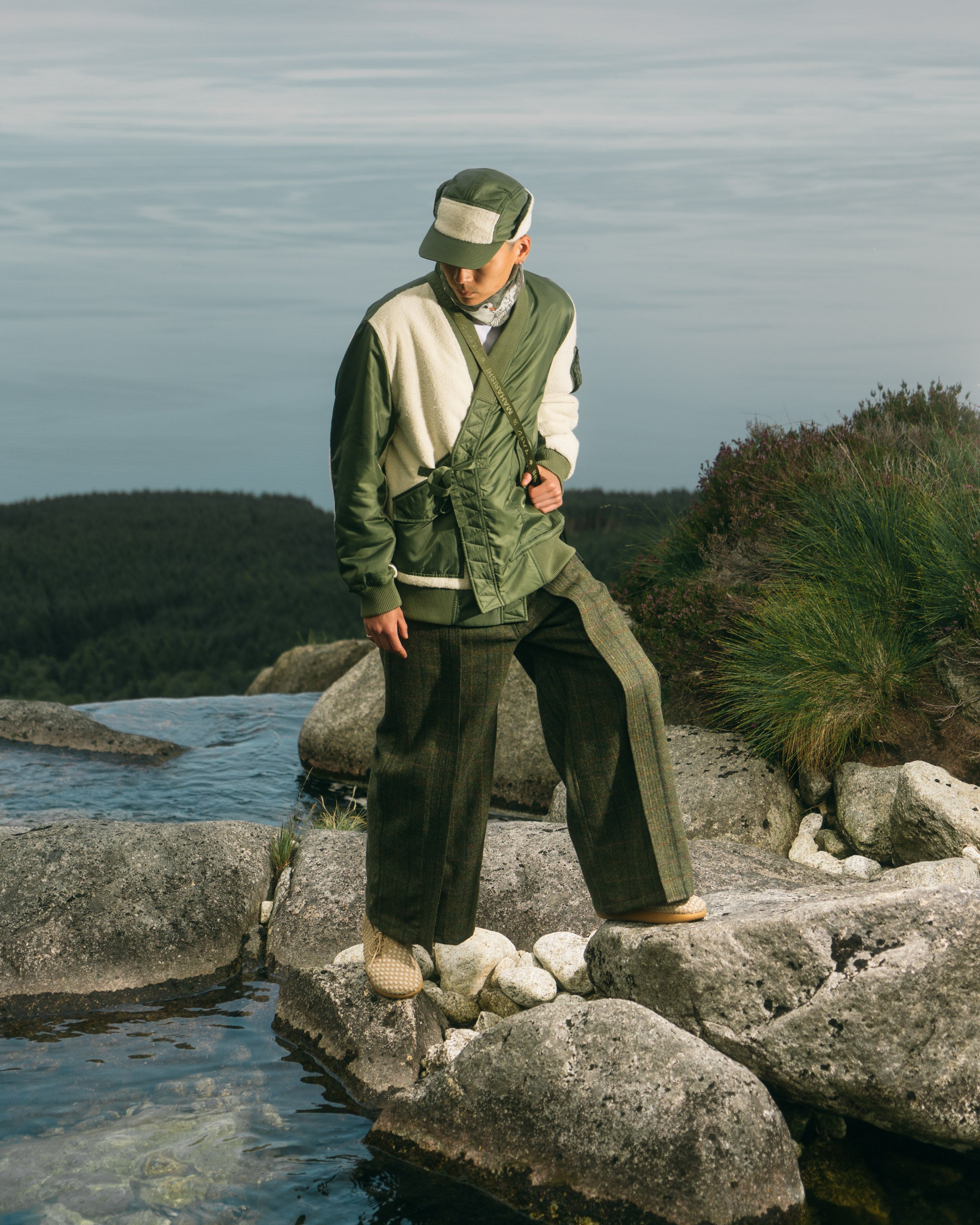 Shown against a backdrop of the Isle’s standing rocks, the imagery re-connects Maharishi’s designs to the natural world and intertwines the brand’s own values with the spiritual importance of the Isle of Arran.