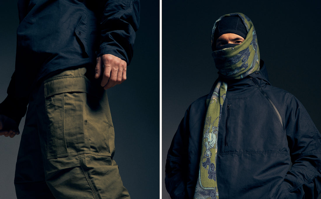 Thai handcraft style is juxtaposed with technical cloths on shirting and transitional outerwear including a naturally waterproof cotton/hemp Ventile® woven in Switzerland, jersey and Cordura®'s NYCO® nylon cotton blend sourced from Japan.