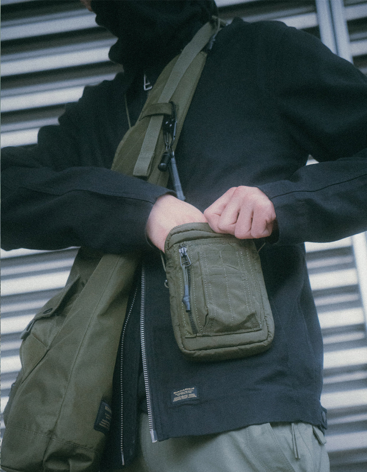 Maharishi incorporates a functional approach to their Pacifist Military Design ethos, developing a selection of bags and small accessories which pay homage to the design language of ‘70s US Military carrying systems.