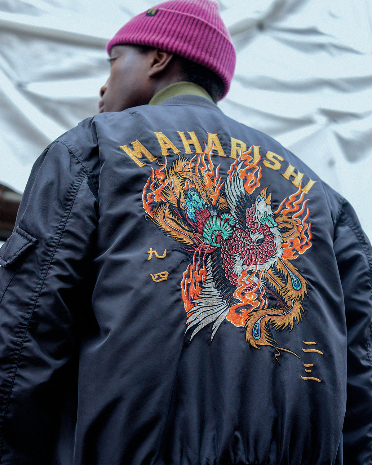 Maharishi collaborates with Buddha-Dharma artist Tashi Mannox on an array of artworks, prints and embroideries for Spring / Summer 2024 Pre, welcoming the Lunar New Year in celebration alongside Maharishi’s 30th anniversary.