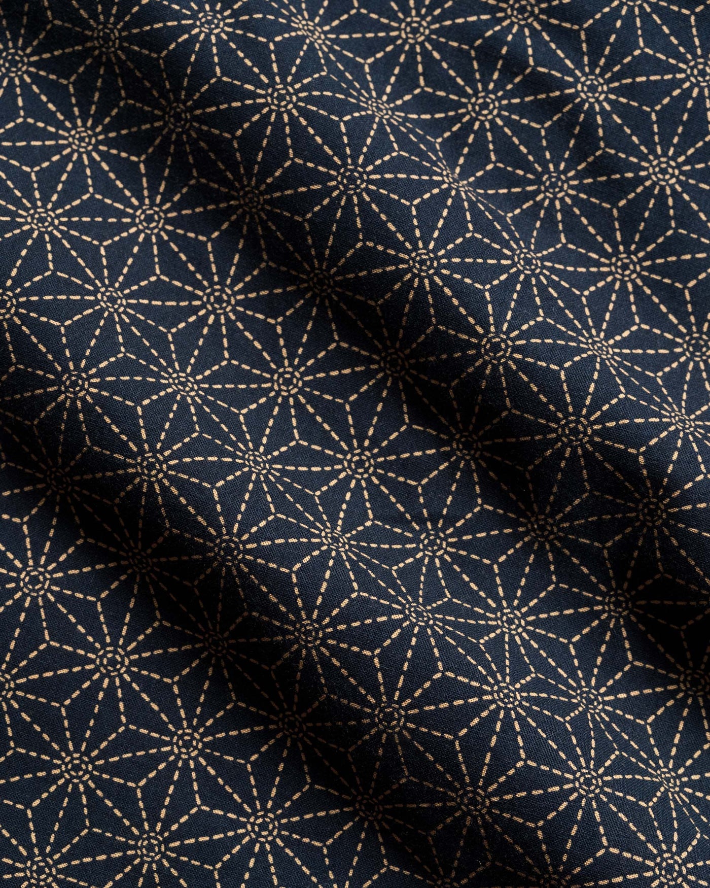 A geometrically printed cotton, crafted in Japan and offering enhanced durability and ease of care thanks to the canvas weave, creating a smooth finish and lightweight texture.
