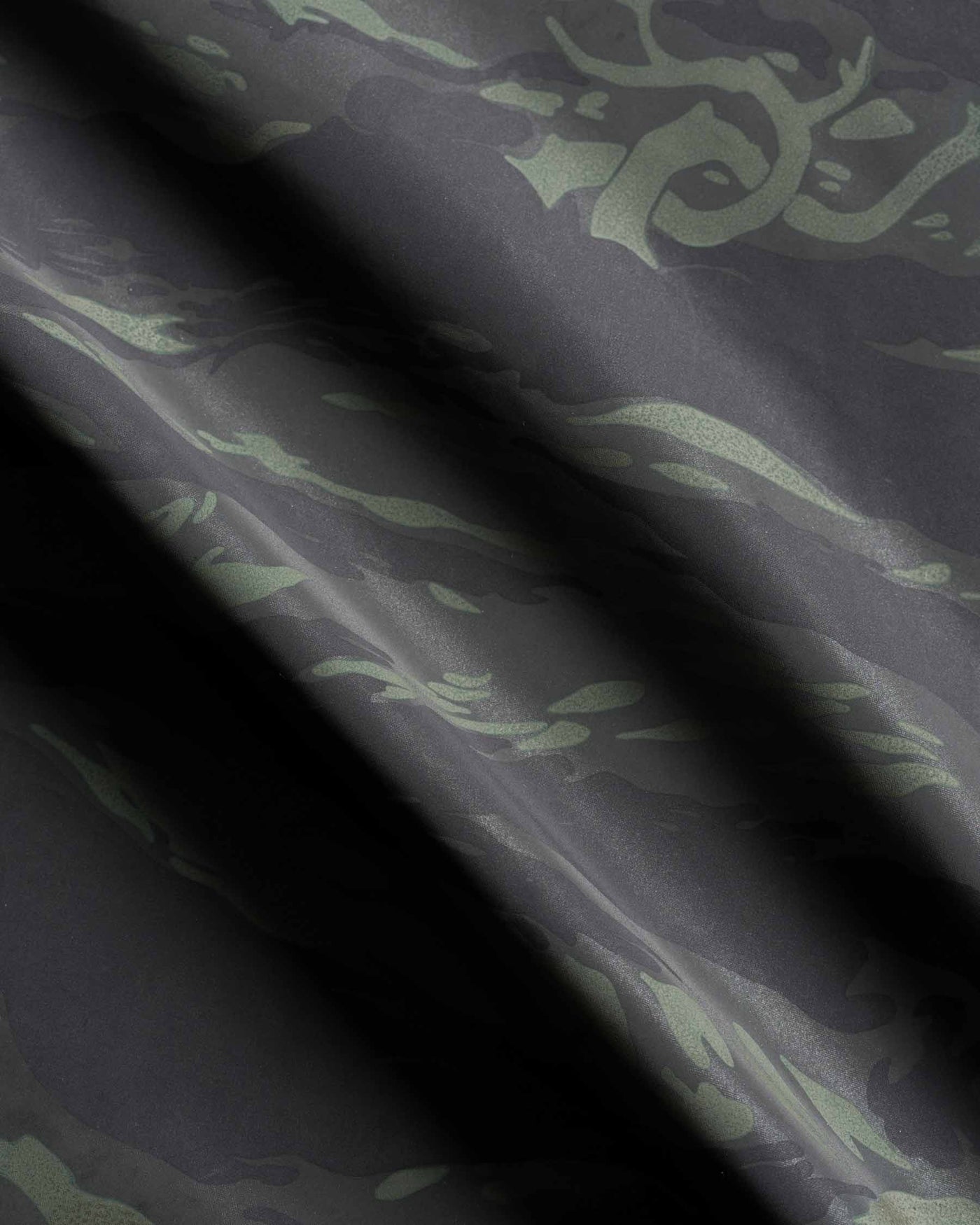 High-visibility fabric made from a dense layer of glass beads that reflect light from all angles, while the polyester adds strength and flexibility. The bonding resin locks the components together, creating a durable and lightweight material.