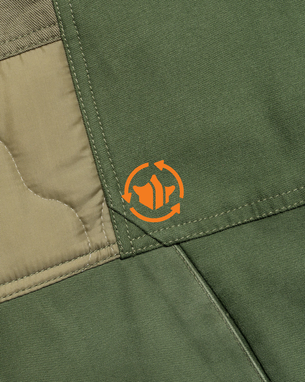 Military surplus is a permanent feature at Maharishi, transforming unwearable items into ready-to-wear garments and reclaiming them as symbols of peace rather than war. Clothing is smudged with herbal incense, blessed, and washed in saffron water to symbolically cleanse it of its military associations.