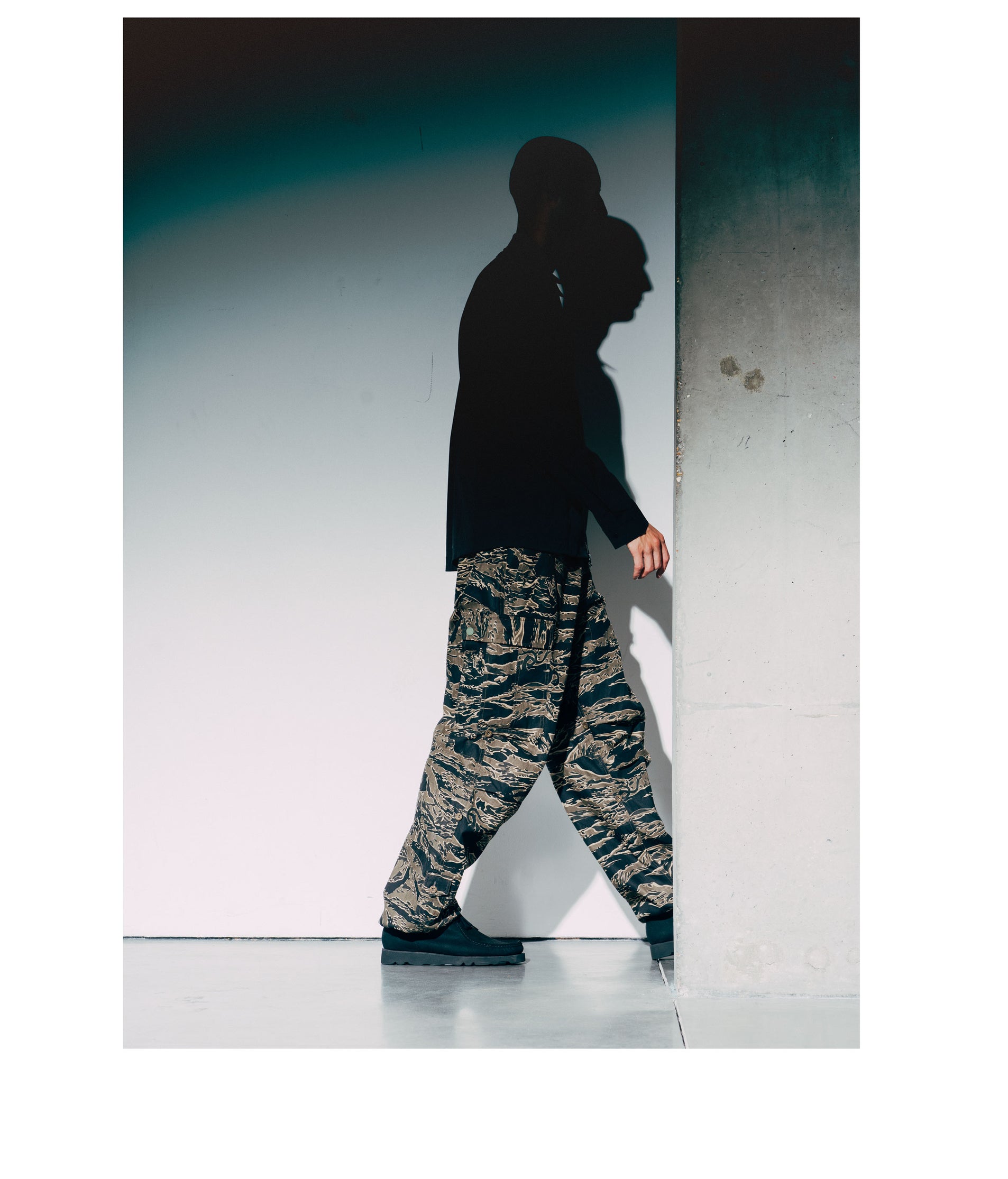 Maharishi presents its selection of trousers, including new styles and classic Maha silhouettes. Signature pacifist military design is explored across a range of loose and custom-fitting iterations that offer hand-machine embroideries and integrated functional features.