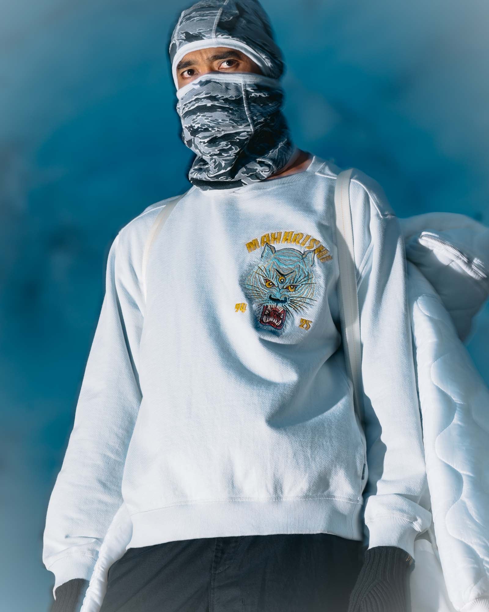Since 1994, hand-machine embroidery has been a mainstay throughout all Maharishi collections.
