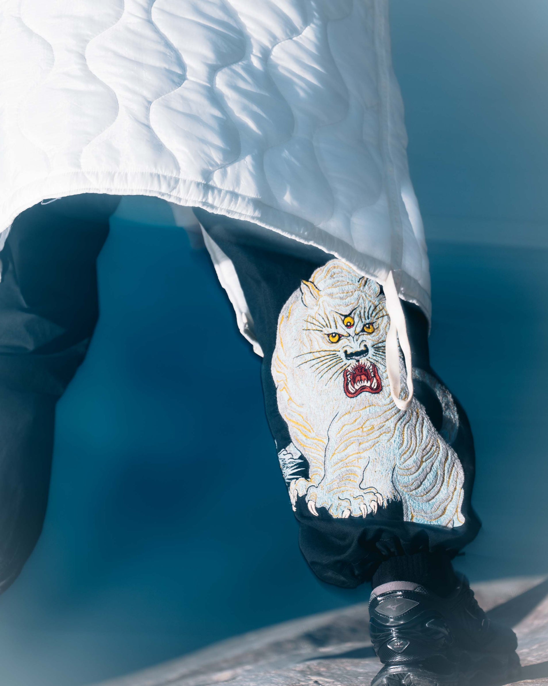 Since 1994, hand-machine embroidery has been a mainstay throughout all Maharishi collections.