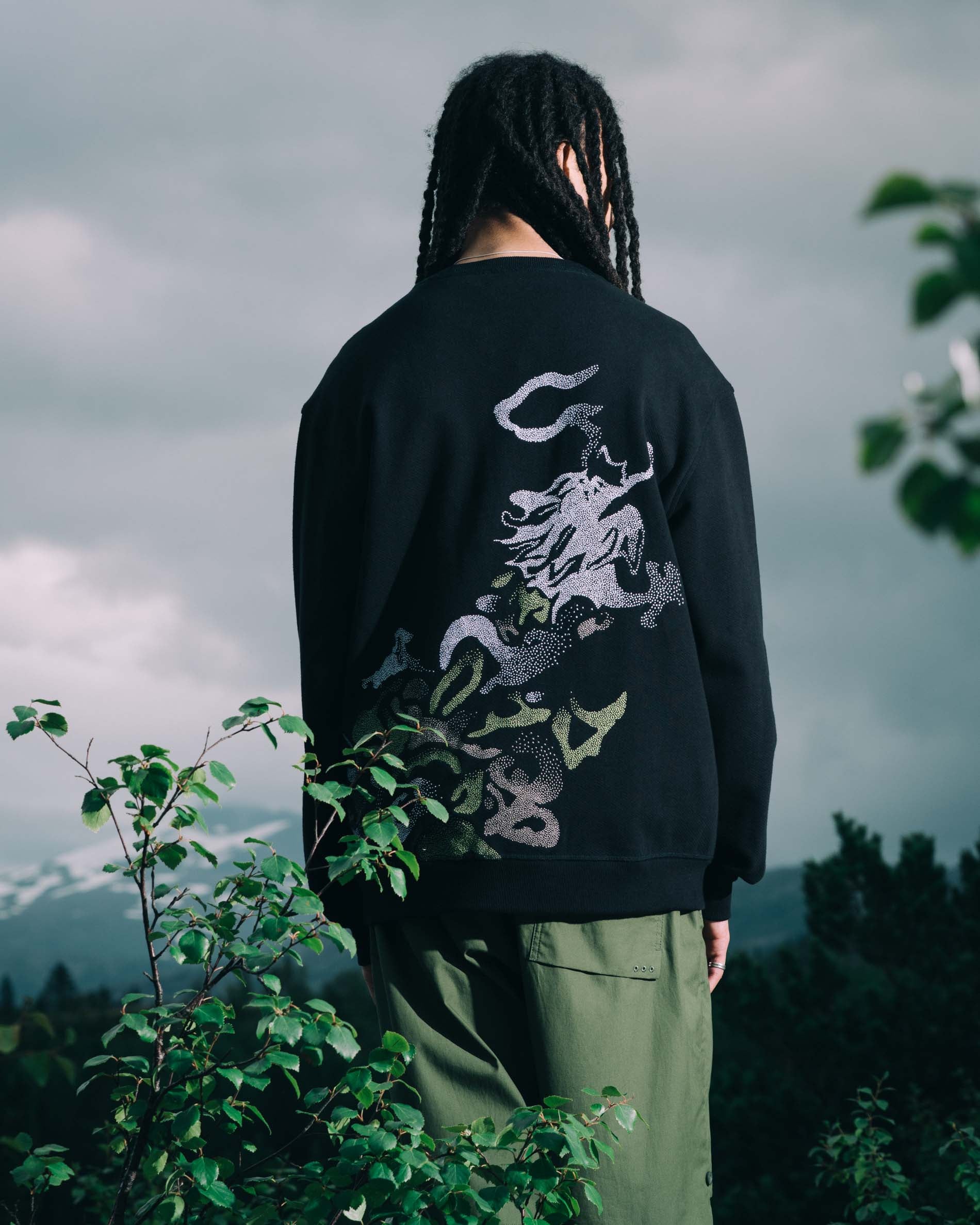 7125 Pointillist Dragon Embroidered Crew Sweat Black