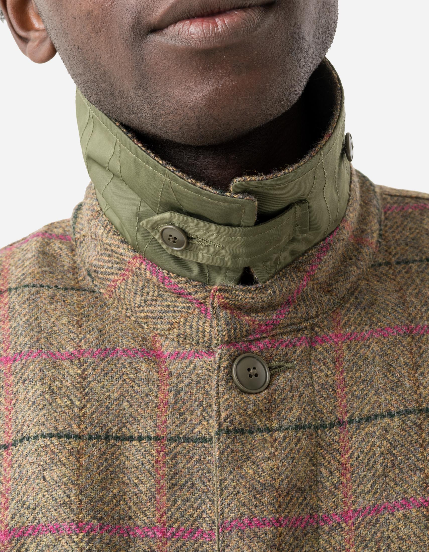 Long single-breasted wool coat with internal fitted MA-1 flight jacket. The outer is constructed from a panelwork of herringbone wool and tonal flight nylon is featured throughout the sleeve and pocket trims. The inner MA-1 is fitted with a zip closure, internal carry straps and hi-vis orange lining.
