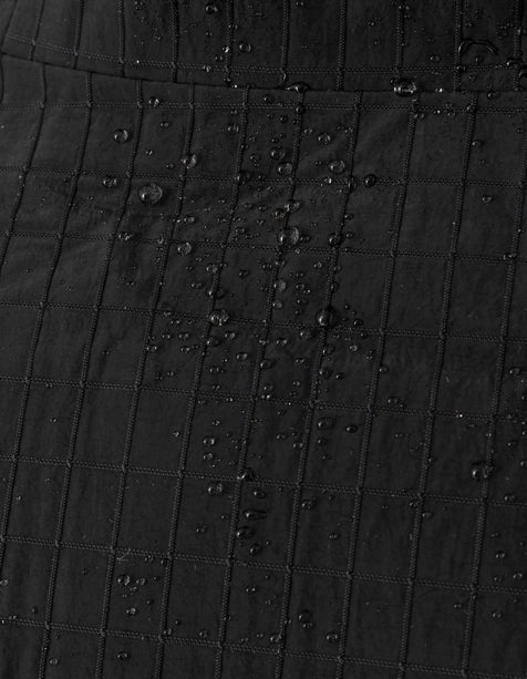 The Waterproof Tech Jacket in black is constructed from recycled fibre ripstop nylon, offering water resistance and breathability for reliable performance in changing conditions. Fully seam-sealed throughout, it provides enhanced protection from the elements.