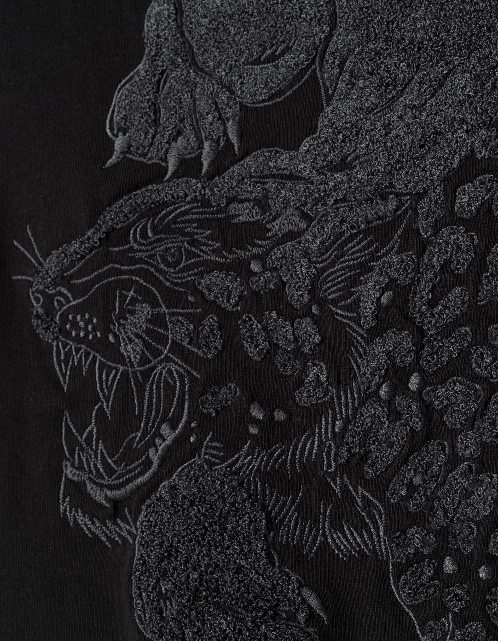 Long-sleeve tee in black, with tonal Chimera Panther artwork on the sleeves and chest. Cut to a relaxed fit in organic cotton jersey.